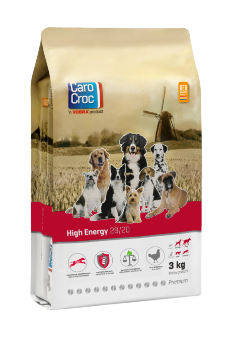 Verwacht je periodiek extreme inspanning en prestaties van je hond en is hij meer dan 3 uur per dag (intensief) in beweging? Denk hierbij aan honden tijdens het jachtseizoen of honden die aan endurance training doen. Voorkom tekorten en voer je hond tijdens deze periode CaroCroc High Energy. Dankzij de uitgebalanceerde samenstelling met hoogwaardige grondstoffen, zoals dierlijke eiwitten, vetten, mineralen en een optimale verhouding omega-3 en -6 vetzuren, biedt CaroCroc High Energy jouw hond datgene wat hij nodig heeft.
