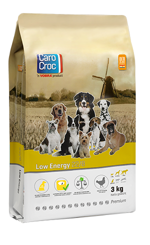 CaroCroc Low Energy is een brok voor volwassen honden met relatief weinig lichamelijke inspanning (minder dan één uur beweging per dag), honden die last hebben van of neigen naar overgewicht (bijvoorbeeld Labrador en Golden Retriever) of gecastreerd/gesteriliseerd zijn.