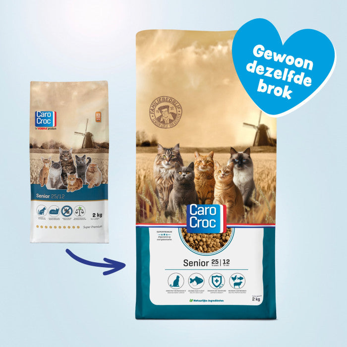 Naarmate katten ouder worden, veranderen de voedingsbehoeften. CaroCroc Senior 25/12 is afgestemd op de specifieke behoeften van katten vanaf 8 jaar.