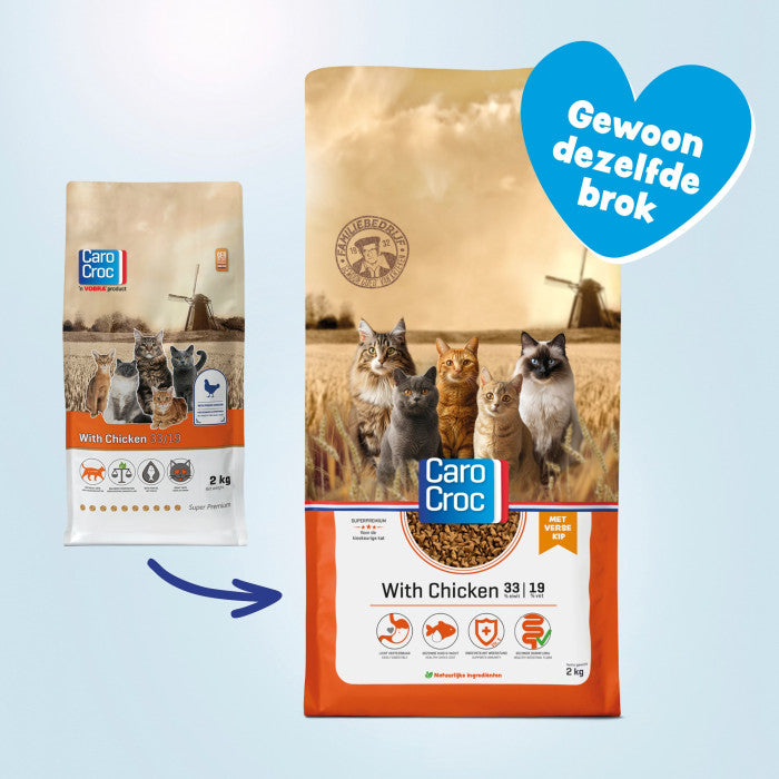 CaroCroc With Chicken 33/19 is een complete voeding met verse kip voor volwassen katten jonger dan 8 jaar. Het bevat alle voedingsstoffen die je volwassen kat nodig heeft.